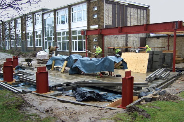 The steelwork has been erected and awaits the delivery of the glulam beams, manufactured in Denmark. Delivery is expected towards the end of February. The high tech computer desks have been ordered and the service co-ordination completed.