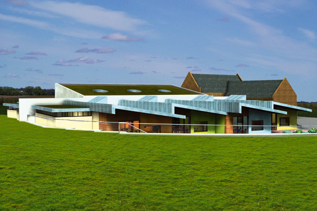 A green roof was detailed into the design to blend into the background of trees on the adjacent site and to minimise the impact on the surrounding countryside.