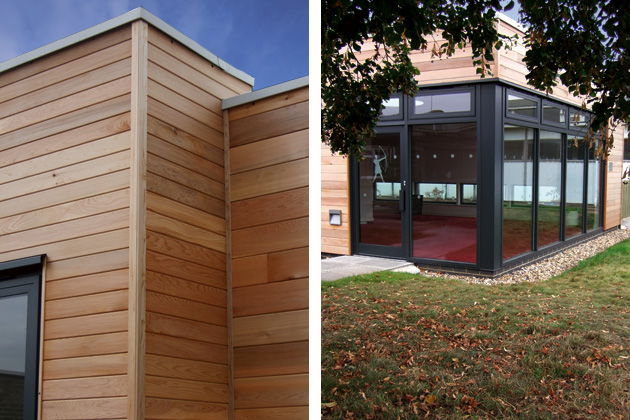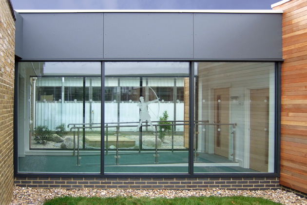 The building form was generated by satisfying a number of key design objectives. We set out to minimise the impact on adjoining buildings and improve the appearance of one part of the school and form a focus to the grassed courtyard. We used large windows to give the best views from the extension.